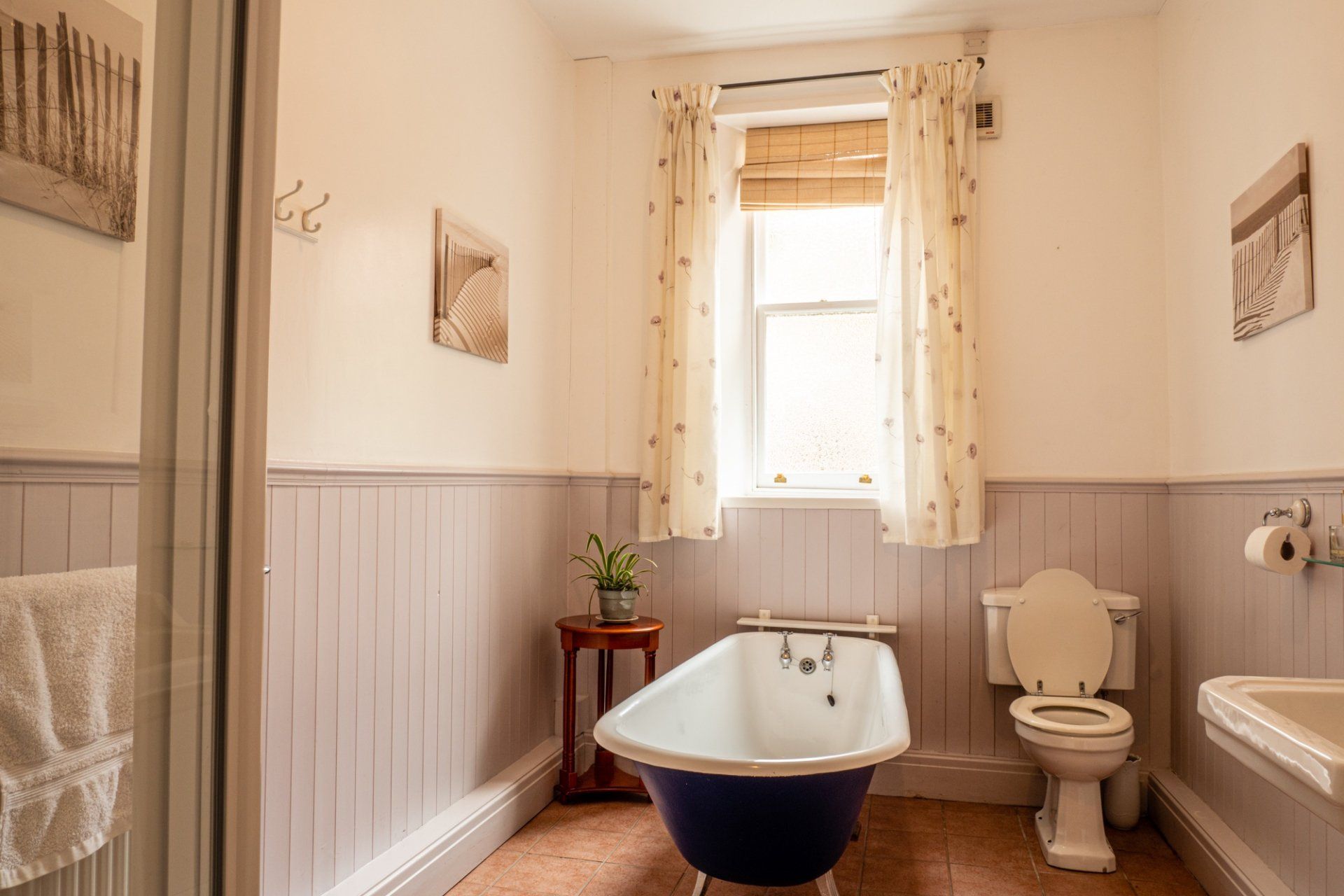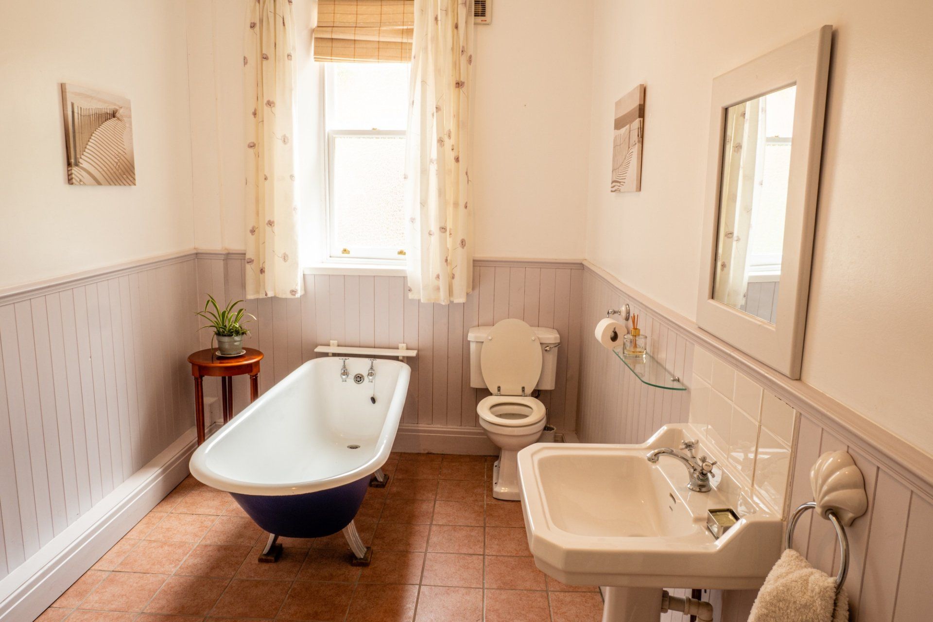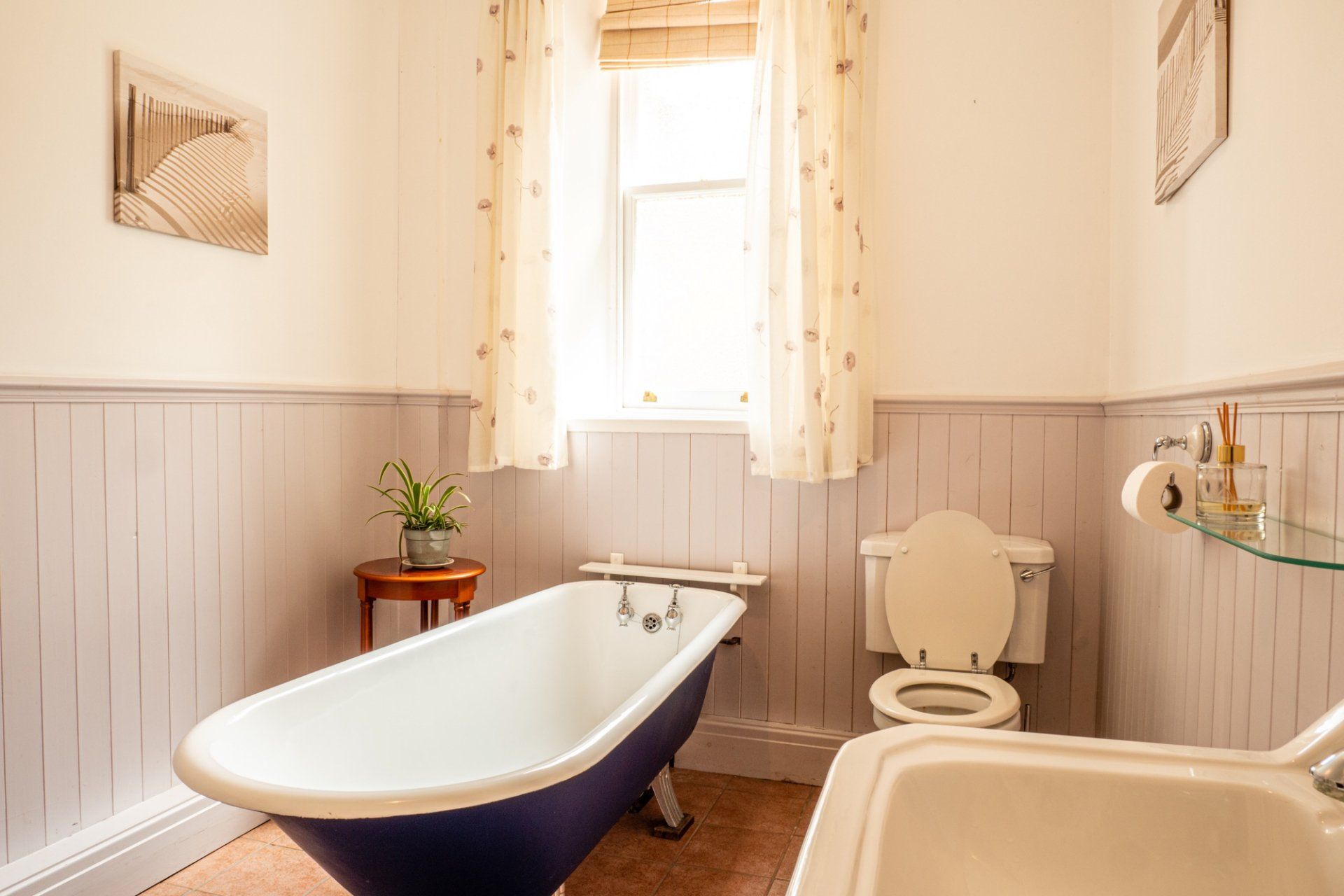 - Cumberland (bedroom) – ground floor superking/twin room with bathroom next door with shower and roll-top bath