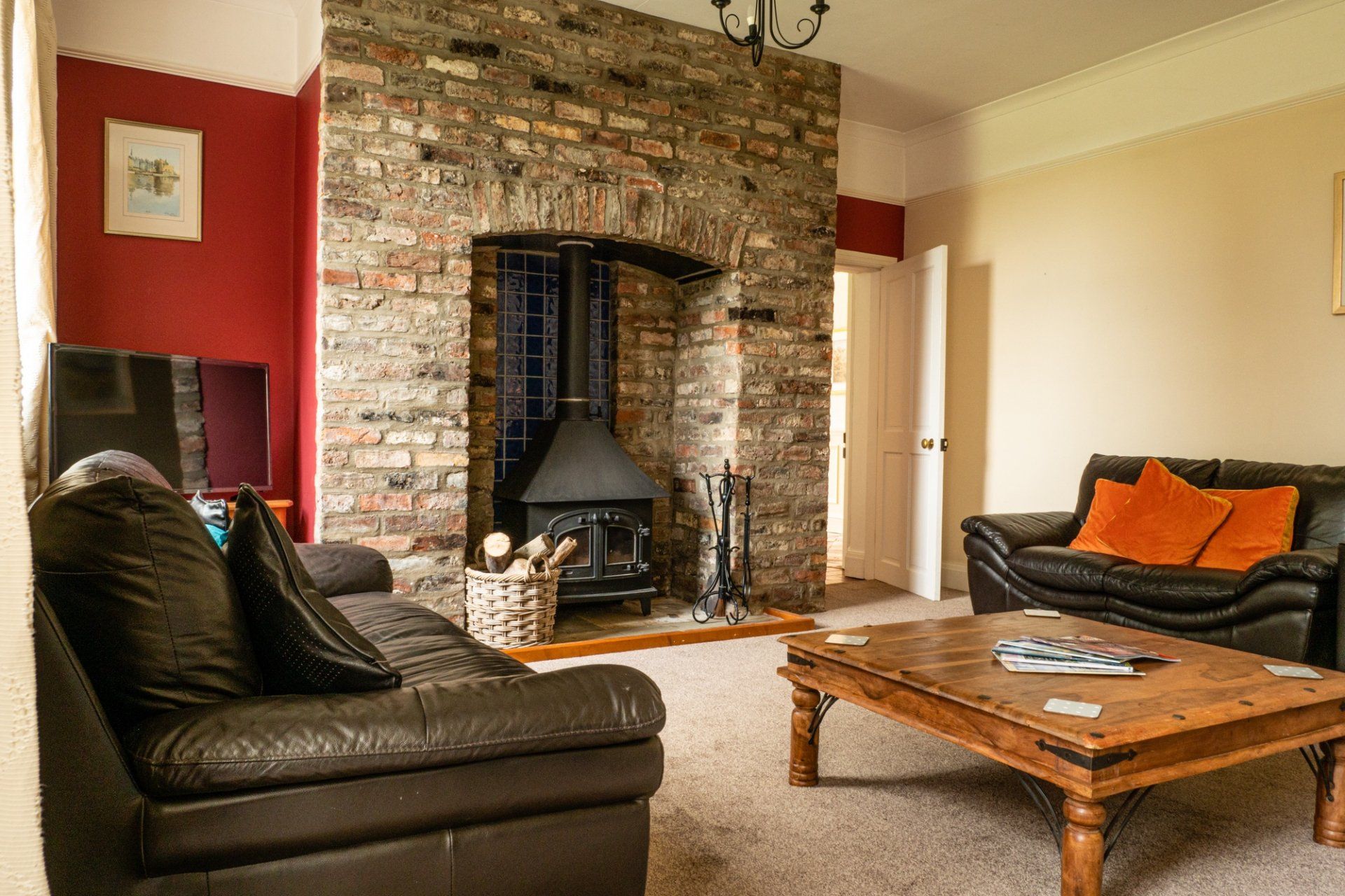 - Sitting room with multifuel stove, TV and seating for 12